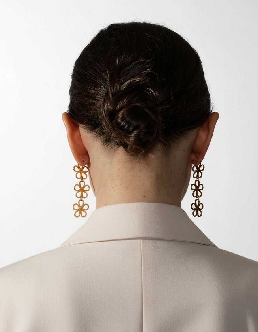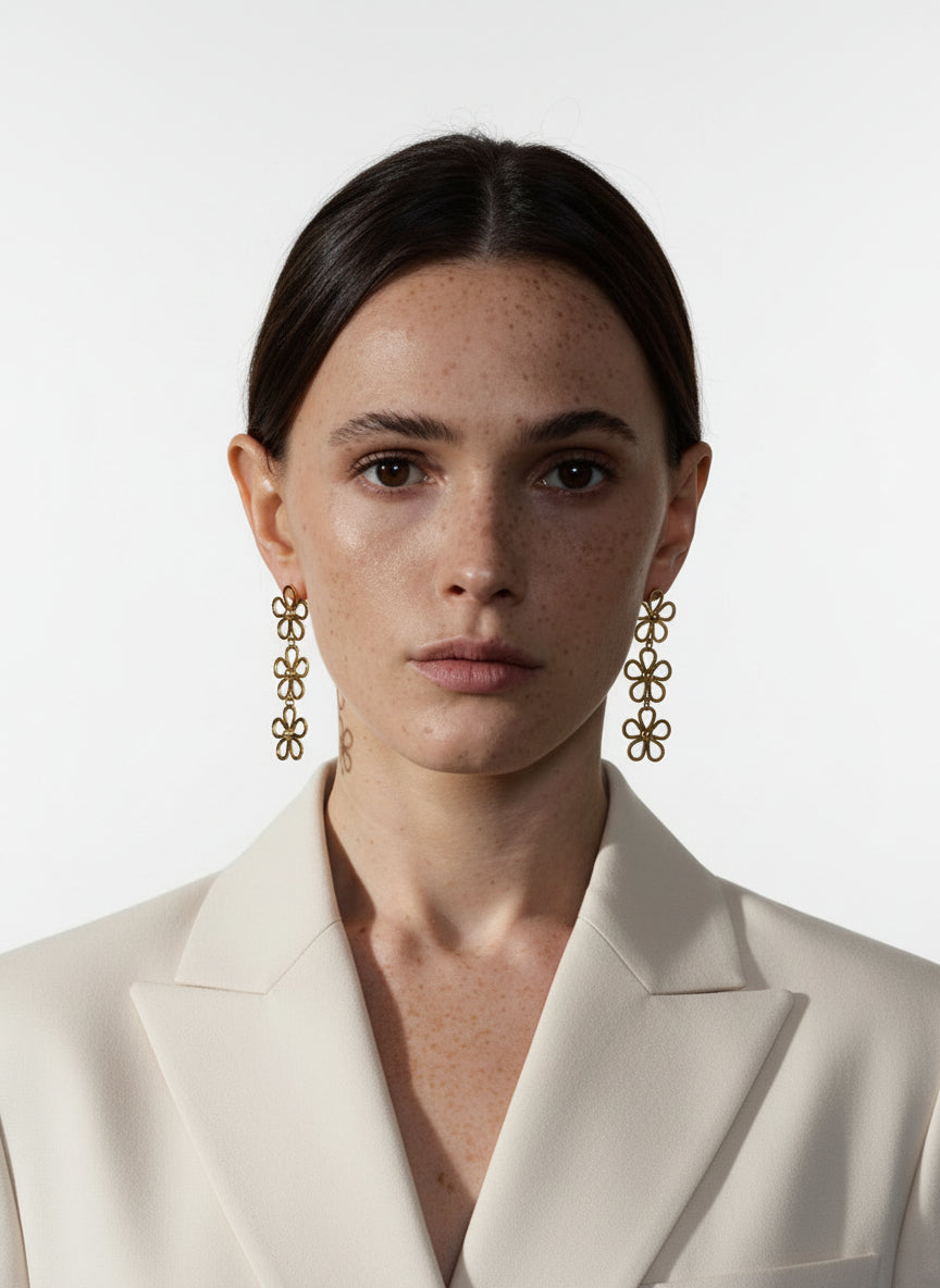 Style : Boucles dâoreilles pendantes florales, effet statement